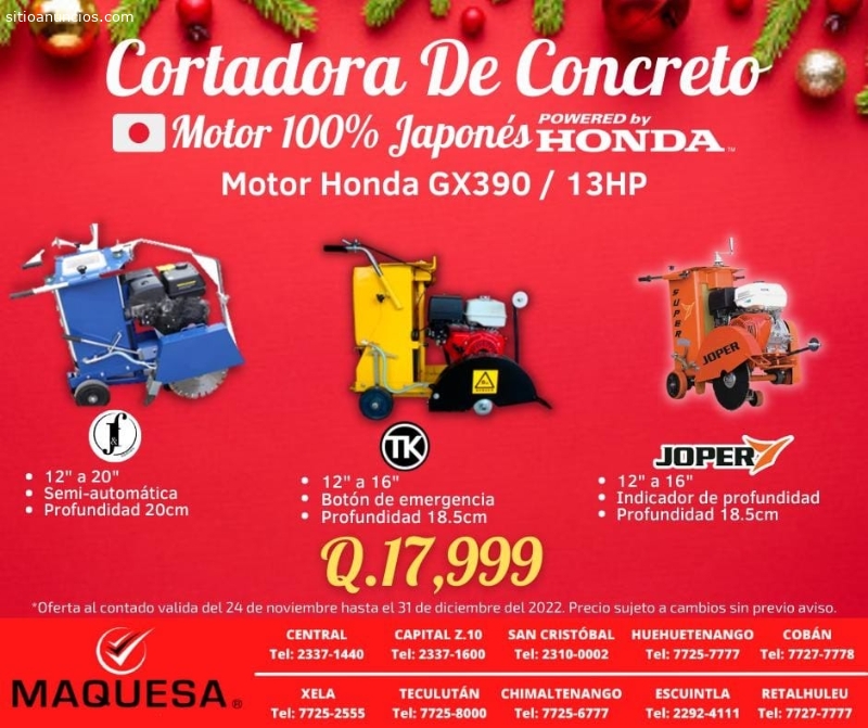 Las mejores ofertas navideñas las tenemos Cortadora de Piso Semi-automatica Con Motor Honda 100% Japones de 13 HP solo en Maquesa RetalhuleuMedidas: