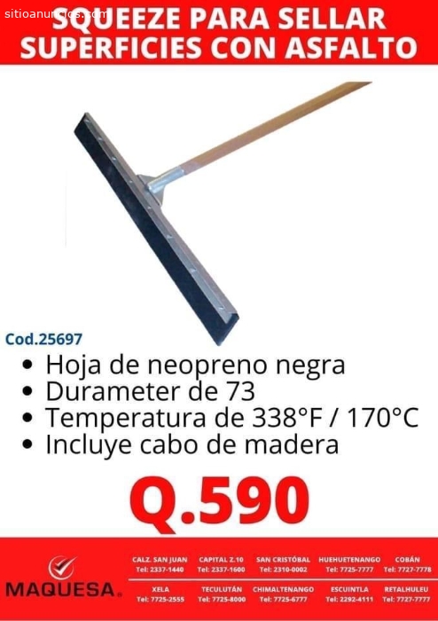 Sellar superficies con asfaltoUtilizado para esparcir selladores sobre superficies de asfalto existentes. La construcción duradera de aluminio y acero viene con una hoja de neopreno negro reversible que tiene un durómetro de 72 y una clasificación de temperatura de 220 ° F (104 ° C).