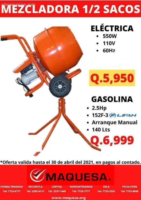MEZCLADORA 1/2 SACOS.?????????