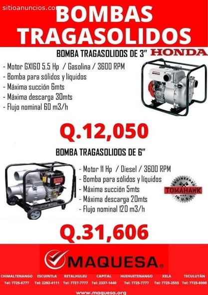 BOMBAS DE AGUA TRAGASOLIDOS !!Es un tipo de bomba centrifuga y se le conoce así por la capacidad que tiene de dejar pasar fácilmente un alto contenido de sólidos que las bombas centrífugas convencionales no , con esto minimizan el tiempo muerto que causan bloqueos.