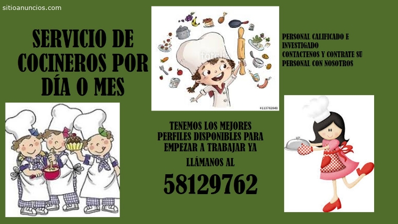 SERVICIO DE COCINERO POR DÍA O POR MES