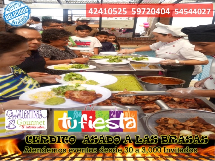 Recibe un cordial saludo de nuestro equipo de colaboradores y departamento de eventos. Quienes hacen posible que tu Acontecimiento se convierta en un Show Gastronómico de Alto Nivel. DELEITA A TUS FAMILIARES Y AMIGOS NO ARRIESGUES TU PRESTIGIO,, PORQUE EN VALENTINA`S GOURMET Llevamos el mejor Sabor a tu Evento!!! Puntualidad, Sazón, Higiene, Amabilidad, y lo mas importante Abundancia en el menú, ES LO QUE HACE QUE TUS AMIGOS Y FAMILIARES SE SORPRENDAN CON TU CERDITO ASADO A LAS BRASAS,,,,,,,,,Información