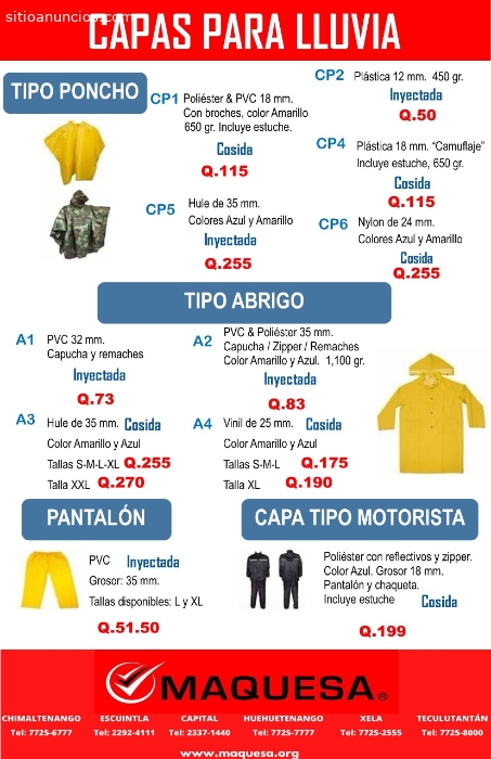 Los mejores precios siempre en Maquesa RetalhuleuCAPA PARA LLUVIA