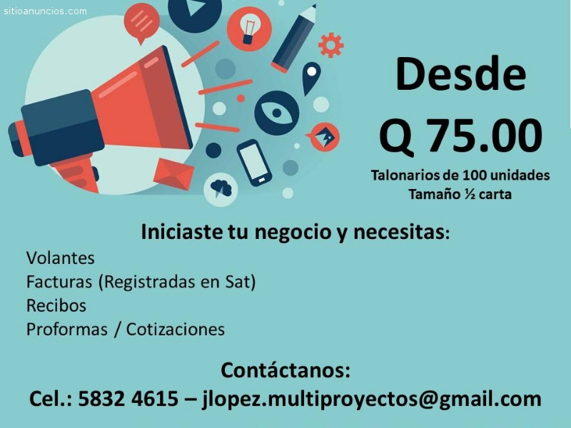 Impresion de facturas desde Q 75.00 medida 1/2 carta, en ciento en papel sensibilizadoInformación