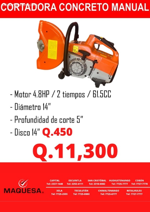CORTADORA MANUAL PARA DORTE DE CONCRETOLas máquinas cortadoras de concreto, son herramientas útiles que facilitan el corte preciso de porciones de concreto en la Construcción; pero también tiene otras aplicaciones industriales.