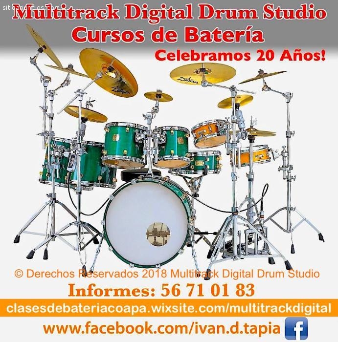 Multitrack Digital Drum Studio fundado en Abril 1998 cuya misión es impartir una educación musical de calidad y seria a principiantes, intermedios, avanzados, así también a profesionales, en lo que refiere a la batería como instrumento.NO PAGAS INSCRIPCION, mensualidad congelada durante todo el curso en cualquiera de los PAQUETES DE CLASES ofreciéndote varias alternativas, instalaciones impecables, con equipo de ultima generación, atención y clases de primer nivel, material de estudio inclui