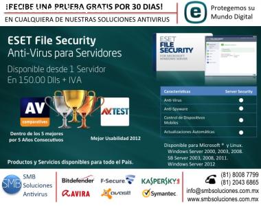 Recibe una prueba GRATIS por 30 días de cualquiera de nuestras Soluciones Antivirus para Oficinas, PyMEs y Empresa.Precio ESPECIAL a Escuelas Publicas ó Privadas y Dependencias de Gobierno.