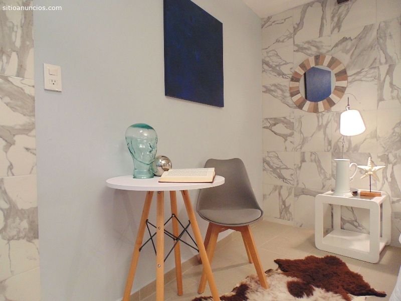 Amueblada, baño completo, tv, mesa, silla, closet, microondas, plancha, vajilla, refrigerador, cocienta y mas...