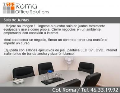 Se renta Sala de Juntas en Centro de Negocios ubicado en la Col. RomaReciba a sus clientes o realice juntas de negocios en un ambiente profesional y empresarial.