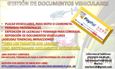 GESTIÓN POR MEDIO DE MERCADO LIBRE: http://servicio.mercadolibre.com.mx/MLM-525550634-placa-_JM