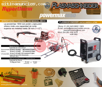 Equipo de corte por plasma Powermax 1650 / Maquina de corte por plasma PMX1650 /Equipo cortador de plasma Powermax1650 / Consumibles, Refacciones y Accesorios Originales Hypertherm