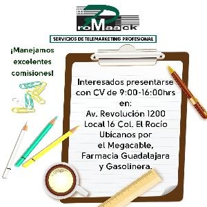 Promaack call center está interesado en que trabajes con nosotros obtén magníficos ingresos, medio tiempo, excelente ambiente de trabajo, crecimiento laboral preséntate en Av. Revolución 1200 col el Rocío a dos cuadras de plaza sendero plaza Revolución hay un mega cable ferretería, Gasolinera y farmacia Guadalajara 9 am www.promaack.com.mx TEL 1610252Página web: