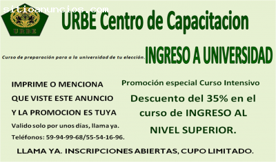 INGRESO A NIVEL LICENCIATURA CONCURSO 2015Curso de preparación para ingresar a la universidad de tu elección en modalidad escolarizada