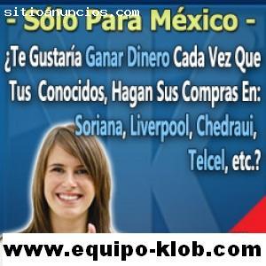 Únete a nuestro equipo KLOB MEXICO y genera ingresos por las compras que tus familiares, amigos y conocidos realizan mes a mes en el supermercado, tiendas departamentales, ropa, accesorios, electrodomesticos, restaurantes y mucho mas!!!¿Sabías que existe una nueva y revolucionaria oportunidad de negocio en MEXICO que te permite ganar dinero?
