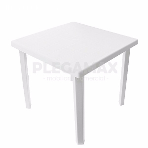 Tenemos a la venta variedad de mobiliario para jardin, como la mesa cuadrada fabricada en polipropileno, tiene medida de 80x80 cm, patas desmontables, para 4 personas y disponible en color blanco.Costo $ 359.60 M.N.