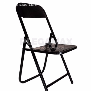 Silla modelo PALENQUERA, estructura tubular cuadrada, plegable, descansa pies, regatones para evitar rayones en los pisos, asiento y respaldo fabricados en lámina dura, terminado en plata o negro; ideal para cualquier evento masivo, como ferias o bailes; la puede usar en el hogar o negocios de alimentos; perfecta para uso constante y "rudo".Costo $ 174.00 M.N.