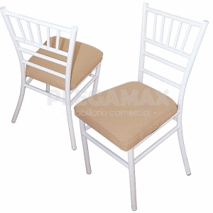 Tenemos a la venta las sillas apilables con estructura tubular de metal, asiento de madera de pino y cojín desmontable en color hueso.Fabricación sobre pedido