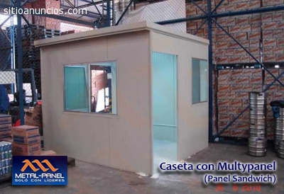 Fabricacion de casetas de panel sandwich (multypanel-ternium).- venta y rentaFabricamos casetas a la medida con aislamiento térmico y acústico. Utilizando el mejor sistema de paneles metálicos aislados tipo sándwich para muros y techos marca Multypanel-Ternium.