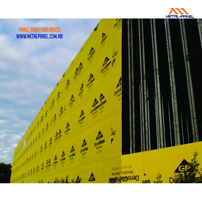 Densglass: DensGlass es una lámina o placa de fibra de vidrio y núcleo de yeso resistente a la humedad. Estas láminas resisten al desprendimiento, deterioro y deformación del panel por 6 meses una vez instalada y a la intemperie sin ningún tipo de tratamiento. La lámina DensGlass presenta una excelente superficie de adhesión y es resistente a la humedad. Son utilizadas preferiblemente para exteriores.Las ventajas del producto densglass son: