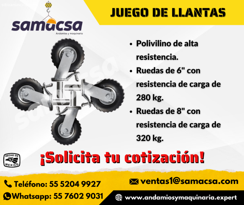 Llantas para andamioRodamientos forrados de plástico que ofrecen movilidad a los andamios dándole una ventaja al poder transportar el Andamio de un lugar a otro para mayor facilidad