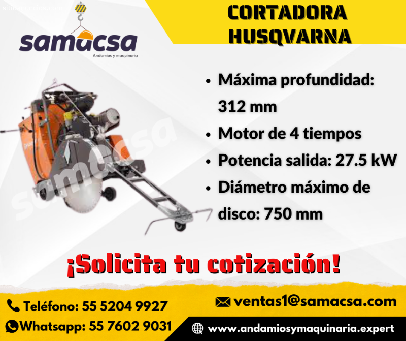 Cortadora de piso Husqvarna•La FS 3500G es una cortadora de suelo auto propulsada ideal para pequeños a medianos parches o cortes de hormigón y asfalto. Equipada con un motor de gasolina Kohler de 27.5 kW. Leve de bajo perfil y fácil manejo y mantenimiento. La correa Poly-V junto con el tensor automático mantienen estables los niveles de potencia en el disco. Capacidad de profundidad de corte de hasta 311 mm con un disco diamantado de 750 mm.