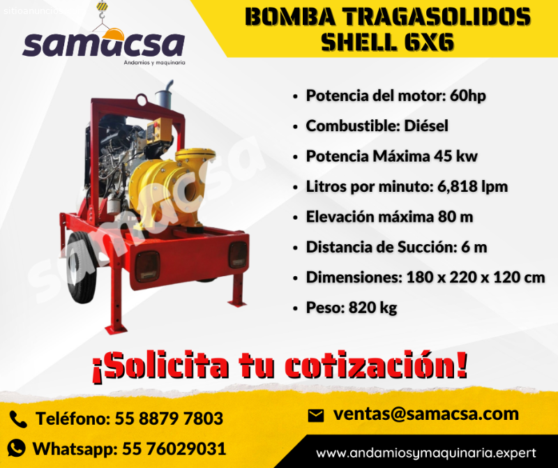 Bomba tragasolidos 6x6 shell•Succión descarga mm (pulg) 152x152(6x6)