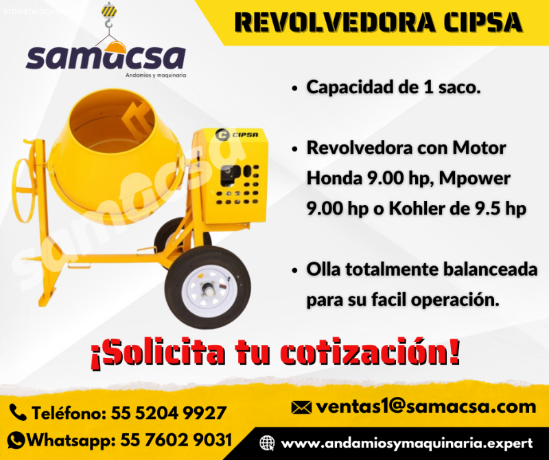 Revolvedora Ultra 10 Cipsa•Es una maquina empleada para la fabricación de concreto. Su principal función es obtener una mezcla homogénea de los elementos.