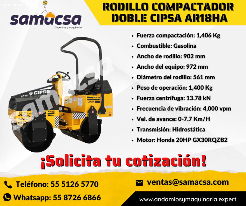 Con dos rodillos vibratorios le hace una opción ideal para ca compactación de casi cualquier superficie