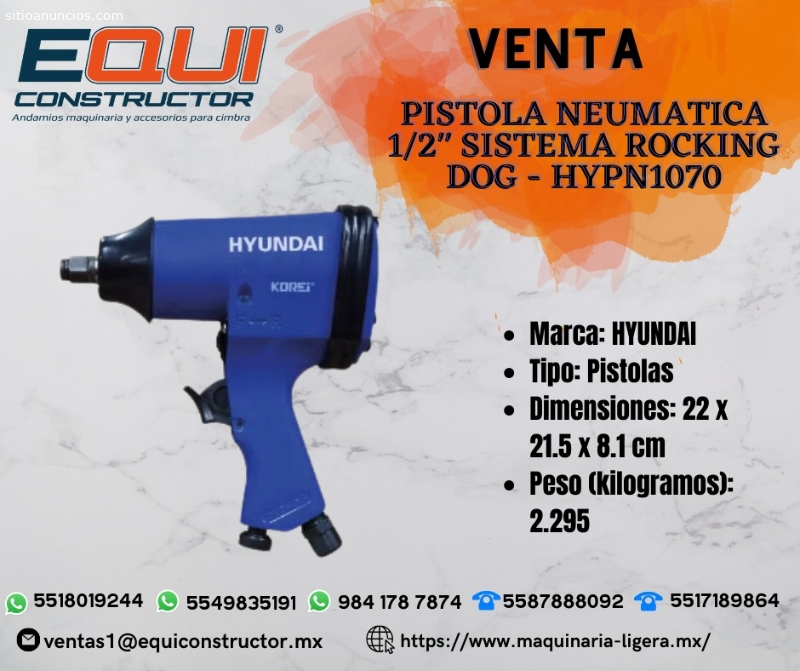 Venta de Pistola Neumática 1/2" Sistema Rocking Dog - HYPN1070.Características: