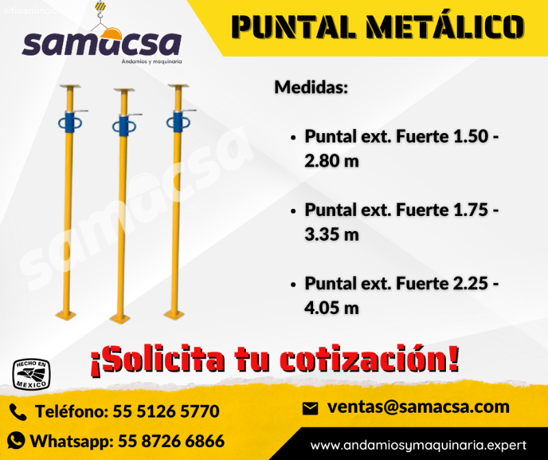Puntal de alta resistencia y alta calidad que certifica y garantiza su funcionalidad y capacidad de cargaMedidas: