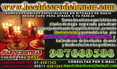 Practico la magia negra con el objetivo de dominar a tu pareja y ponerlo a tus pies en solo 48 horas por más alejado o rebelde que este se porte contigo. Someto a quien desees a tu plena voluntad, hago que cumpla tus deseos más íntimos y garantizo una relación plena y duradera hasta que ti mismo decidas que suceda lo contrario. Recuerda que un efecto de hechicería tiene que ser disuelto por un Maestro y yo puedo realizarlo, doy vuelta a cualquier maleficio de manera instantánea.