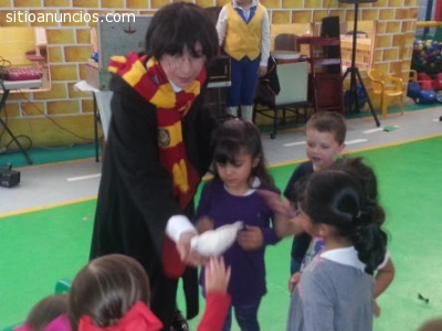 Espectaculo infantil, mago ilusionista caracterizado profesionalmente de Harry Potter,con un diferente e innovador espectaculo de magia para niños.aparicion de palomas y conejos,efectos de agua y fuego,pirotecnia,cañon de confeti,mañanitas,animacion,