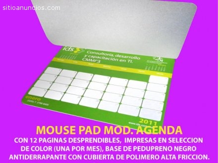 Marca: 55 81 16 63 81 Fabricamos MOUSE PAD CALENDARIO CON 12 HOJAS IMPRESAS A TODO COLOR con base de Pedupreno Negro anti-derrapante y cubierta de LEXAN-MOUSE PAD PERSONALIZADOS