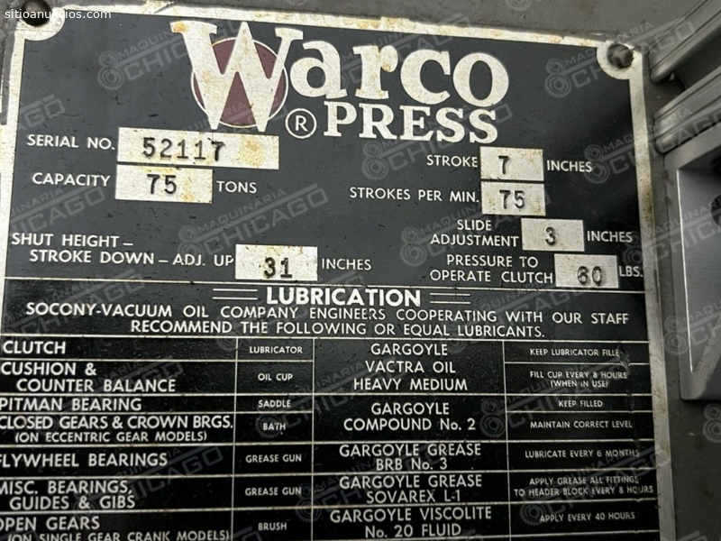Troqueladora WARCO 75 ton