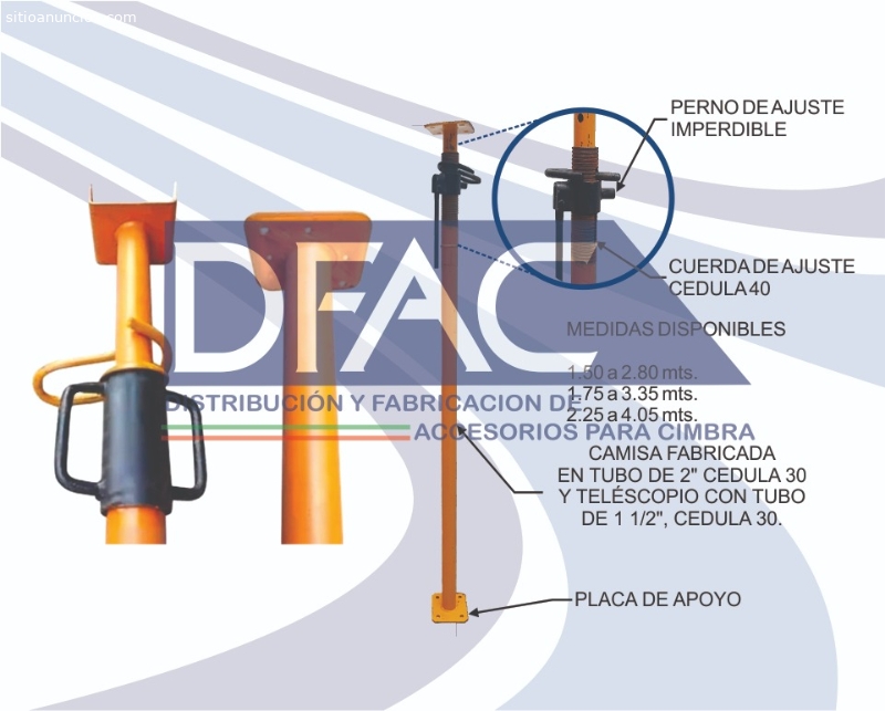 DFAC QUERÉTARO empresa líder en accesorios para cimbra ofrece:Puntal Metálico o Pie Derecho GRANDE 2.25 a 4.05 m. con sistema de apuntalamiento rápido eficiente y económico.