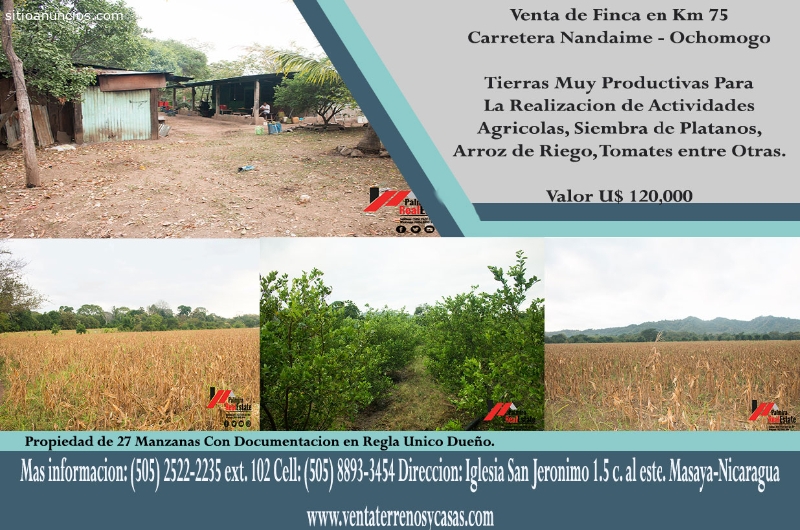 Finca ubicada en el KM 75 de la carretera panamericana sur entre Nandaime y Ochomogo