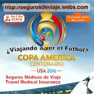Si piensa viajar a ver a su Selección de Futbol participando en la Copa América Centenario USA 2016, no malgaste ni arriesgue su dinero, le ofrecemos un Económico Seguro Médico de Viaje, disponible para Usted y su familia o para su Grupo viajero de 5 o más personas. Contrátelo online a cualquier hora del día o de la noche y obtenga de inmediato su Póliza y Tarjeta de Seguro, en nuestra página http://segurosdeviaje.webs.com H.R.Olivar Seguros de Viaje #SegurosdeViaje #SegurosdeGrupoPágina web: