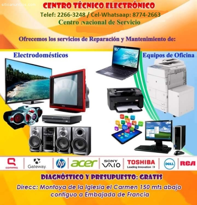 Reparación y Mantenimiento de Electrodomésticos - Te ofrecemos los servicios de reparación y mantenimiento de tus equipos. | - TV Plasma | - LCD | - LED | - Minicomponente | - Microondas | - Computadoras portátil u ordenador de escritorio. | | Diagnostico y Presupuesto sin costo alguno. | | Nuestra Dirección: | En Montoya, De la Iglesia El Carmen 1 1/2 cuadras abajo. Contiguo a la Embajada de Francia. ManaguaPágina web: