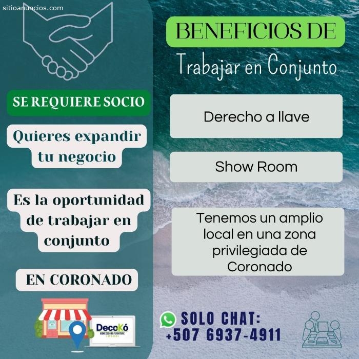 Se busca socio para el area de Coronado.Tengo local con mas de 200 mts2 en una zona privilegiada de Coronado.
