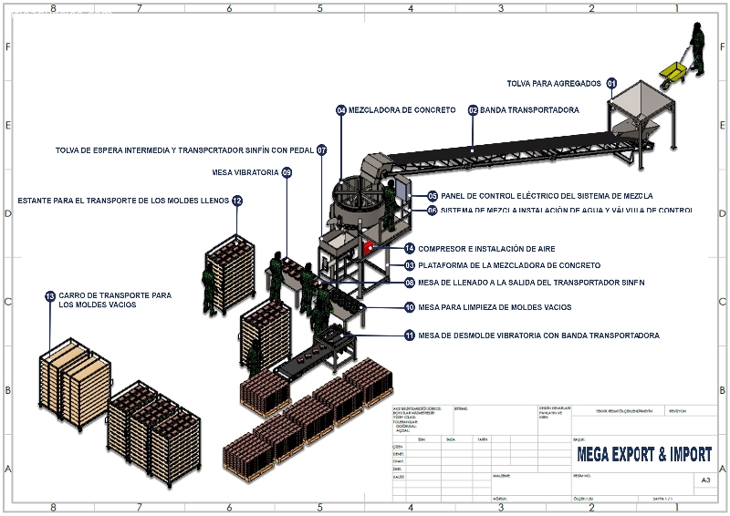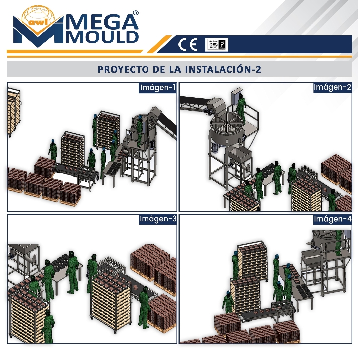 Para la instalación de la fábrica, se necesita un área mínima de 250 m² (10x25) y un total de 22 kW de energía