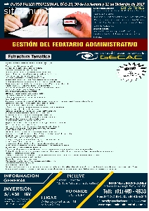 CURSO TALLER PROFESIONAL: DÍAS 29, 30 de Noviembre y 01 de Diciembre de 2017GESTIÓN DEL FEDATARIO ADMINISTRATIVO