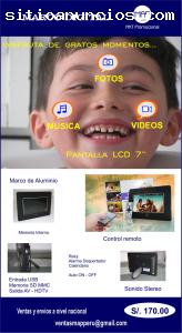 VENDO MARCO FOTOS DIGITALES, CONTROL REMOTO,SONIDO STEREO,MARCO DE ALUMINIO , REPRODUCTOR DE VIDEO,PELICULAS,MÚSICA,FOTOS,GARANTIA ENTREGA A DOMICILIO.