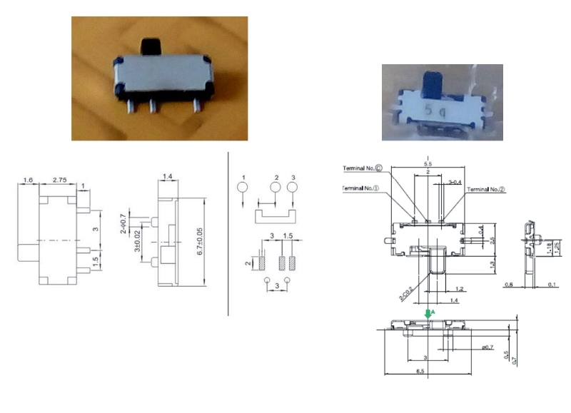 Un pequeño corredera-interruptor electric (SW001) – grosor 1,4mmEspecificación: