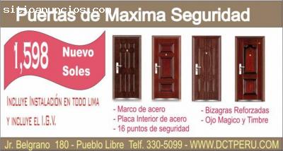 PUERTAS BLINDADASEsta puerta está diseñada para romper los esquemas a los ladrones. Son aprueba de golpes, con sistema anti-hundimiento, anti-palanca y anti-taladro se le incorpora un nuevo cuerpo con ganchos combinado con pestillo para evitar que la puerta NO pueda ser elevada desde el suelo por palanca y además no pueda ser separada del marco por gatos hidráulicos ni por las palancas más potentes. Son propicias para diferentes espesores de pared.