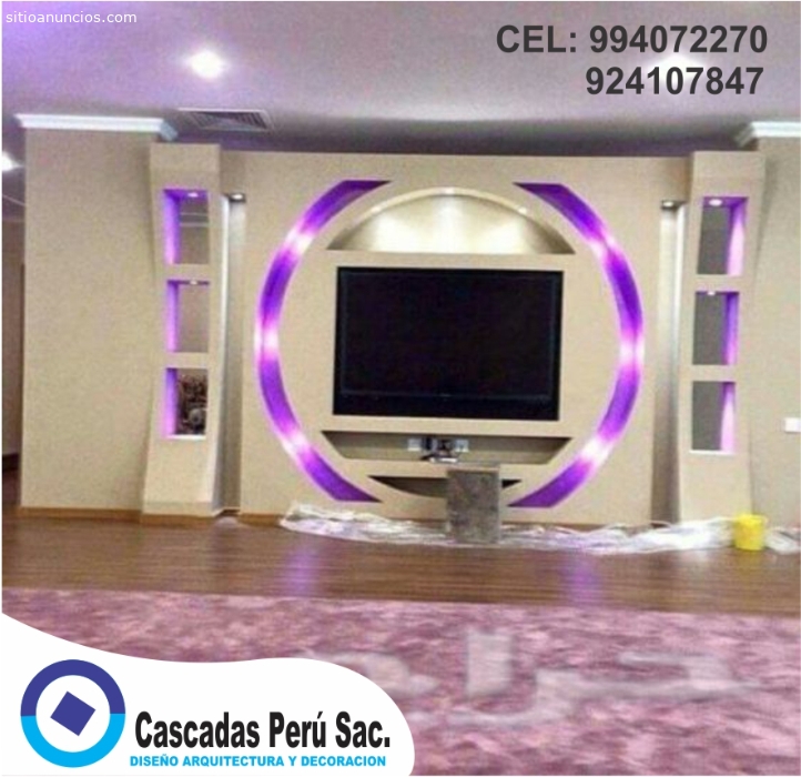 CASCADAS PERU SAC.Somos una empresa dedicada al diseño de interiores y Arquitectura, diseñamos muebles de tv para diferentes ambientes de su hogar como sala, dormitorios, sala estar, etc., buscando que cada ambiente sea más acogedor y moderno con muebles minimalistas haciendo que su estadía del cliente sea acogedora, también los diseños van acompañados de luces led haciéndolo mucho más moderno, todos nuestros diseños van de acorde a la necesidad de nuestros clientes.