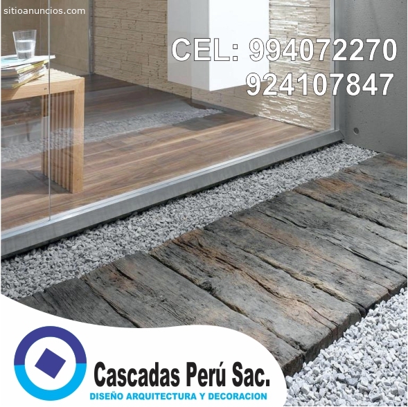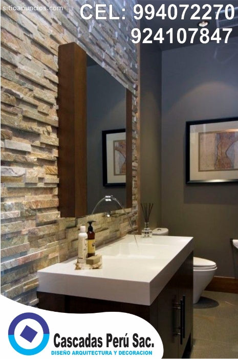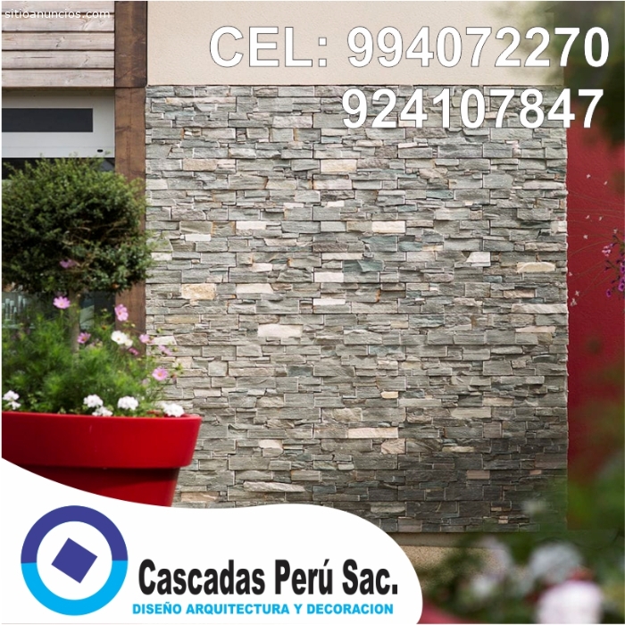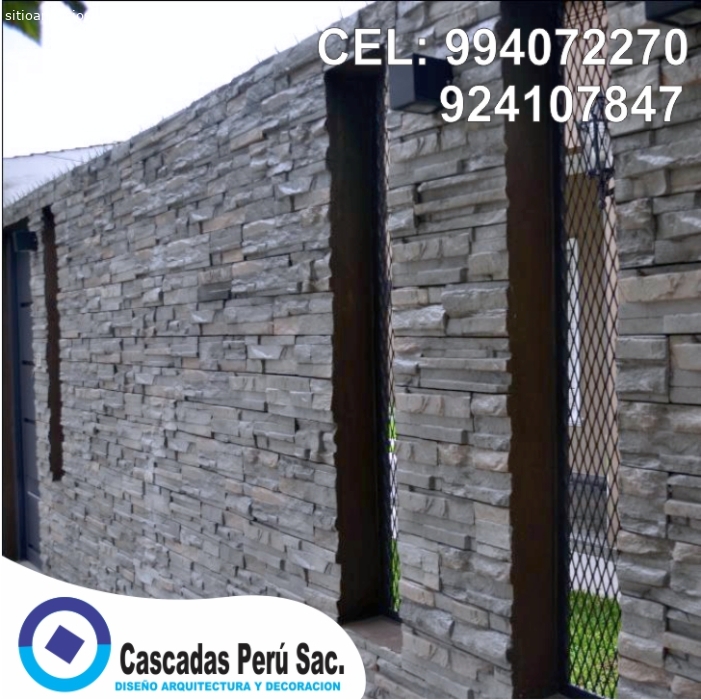 CASCADAS PERU SAC.Somos una empresa dedicada al Diseño y Arquitectura de Interiores, contamos con variedad de servicios, dentro de ello tenemos la decoración de muros exteriores e interiores con fachaletas, piedras, lajas, simulación de piedra natural, fachadas modernas. El objetivo de nuestros diseños es darle variedad a un muro de concreto con un diseño único de tal manera que los muros tengan un lenguaje visual, contamos con variedad de piedras el cual ayudara a que sus diseños sean mas rea