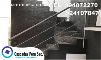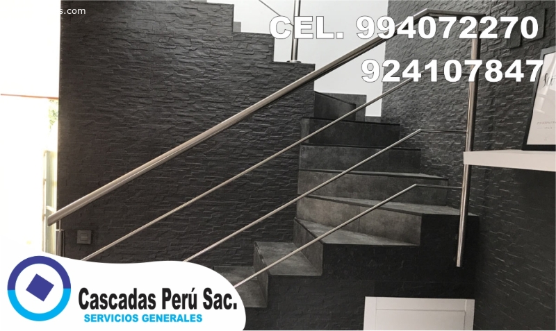CASCADAS PERU SAC.Somos una empresa dedicada al Diseño y Arquitectura de Interiores, realizamos todo tipo de trabajos en acero inoxidable como diseños de barandas, barandillas, pasamanos, rejillas, voladizos, plataformas, entre otros servicios que ofrecemos con trabajos 100% garantizados con profesionales conocedores en el diseño de acero inoxidable, contamos con profesionales que realizan las visitas para la toma de medidas del trabajo a realizar, brindamos trabajos 100% PROFESIONALES para c
