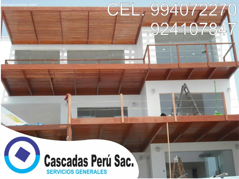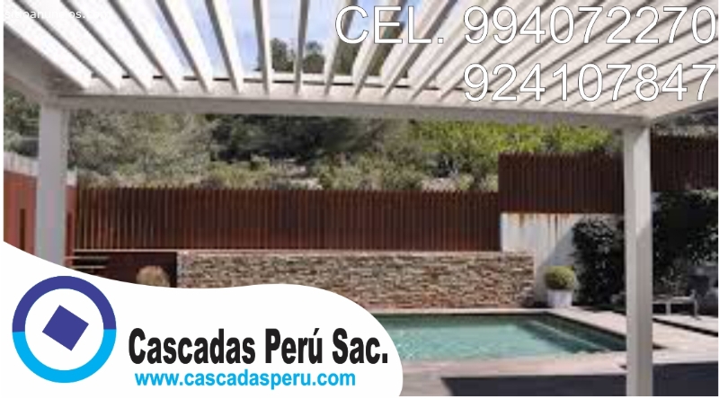 CASCADAS PERU SAC,Somos una empresa que se preocupa por de la decoración de su casa; nosotros le brindamos nuestro producto que son techos sol y sombra de madera, aluminio, policarbonato, huayruro; contamos con variedad de modelos. contáctenos para brindarle más información o una cotización a los números: 994072270 - 924107847 y/o al correo: techos_solysombra@hotmail.com
