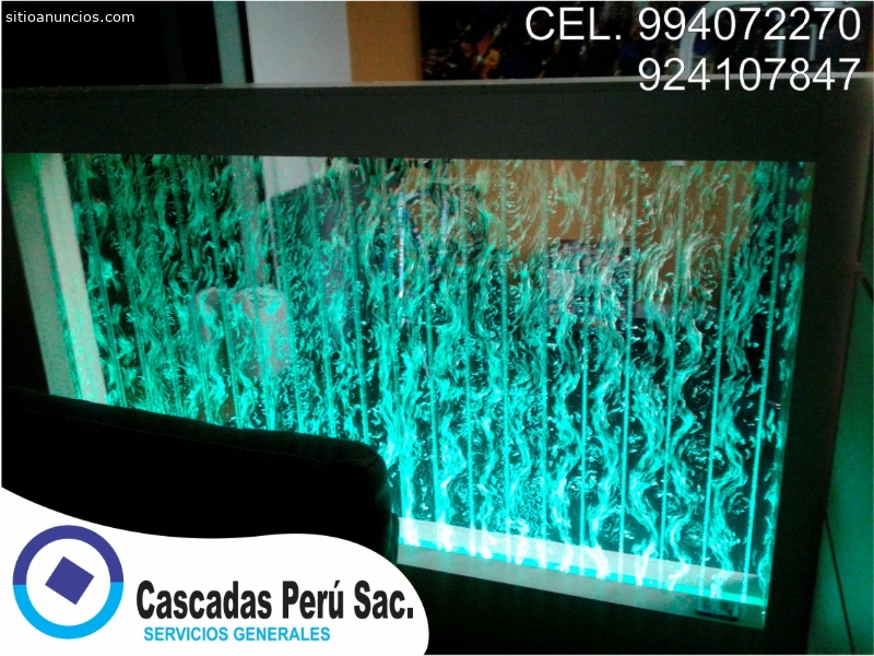 CASCADAS PERU SACSomos una empresa que vende paneles de burbujas, pared de gua, para decoración e iluminación en cualquier ocasión; contamos con variedad de modelos para el cual el cliente requiera.