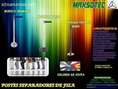MAXSOTEC, ofrece el Servicio de VENTAS Y ALQUILER DE POSTES DE FILA para Eventos, Mantenimiento ó Reparación,